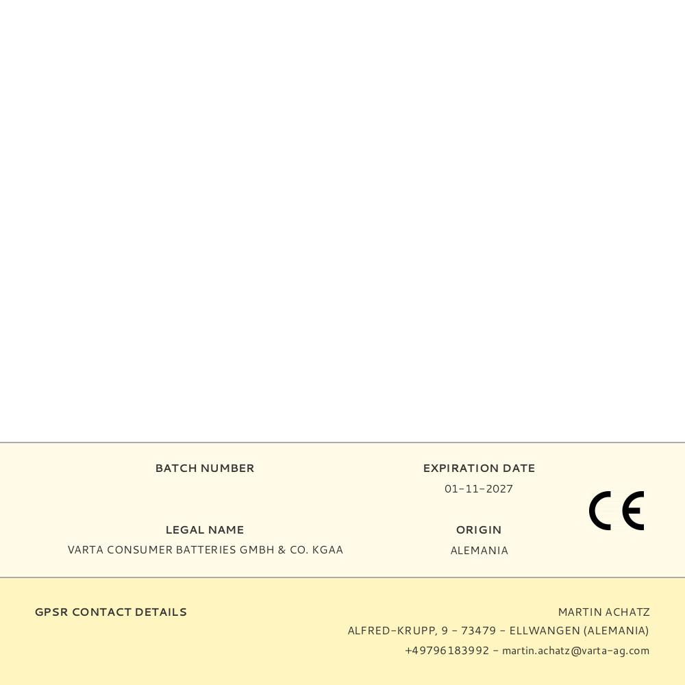 MICRO PILA DE BOTON VARTA SILVER SR44 – V76PX 1,55V (BLISTER 1 unid.) Ø11,6×5,4mm (diámetro/alto)