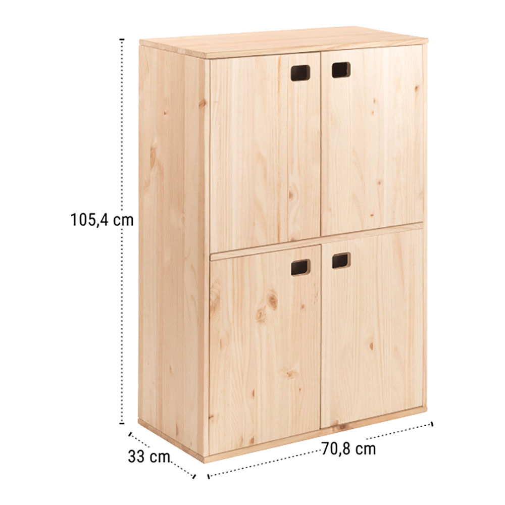 MUEBLE DINAMIC 4 PUERTAS PINO MACIZO ASTIGARRAGA. MEDIDAS: 105,4×70,8x33cm (alto/ancho/fondo) y 16mm de grosor. 4 BALDAS INTERIORES REGULABLES EN ALTURA.