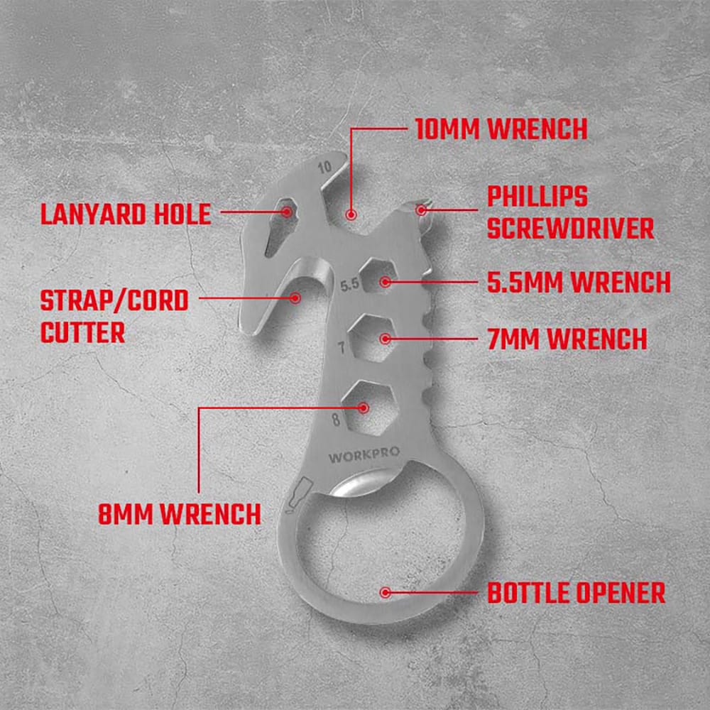 HERRAMIENTA EDC 8 EN 1 . USADA PARA LLEVAR CADA DIA PARA SER USADA EN CUALQUIER MOMENTO Y LUGAR. ACERO 3Cr13 CON UNA DUREZA DE 52. ABRIDOR DE BOTELLA Y CÚTER DE CUERDAS INCLUIDO, TIENE 4 MEDIDAS HEXAGONALES PARA APRETAR O AFLOJAR FACILMENTE TUERCAS Y TORNILLOS, TAMBIEN UNA PUNTA PHILLIPS