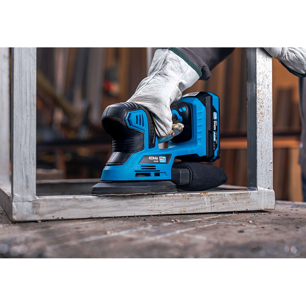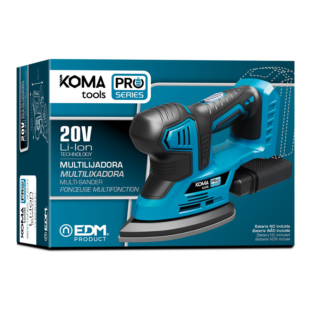 MULTILIJADORA DE BATERIA LI-ON. POTENCIA: 20 V Y 2,0A. SIN BATERÍA NI CARGADOR. 1 VELOCIDAD DE 0 A 12000rpm. MANGO ERGONOMICO DE TACTO SUAVE ANTIVIBRACION. SUELA DE VELCRO. ACCESORIOS: FILTRO RECOGE POLVO + 2 LIJAS P80. DIMENSIONES: 20,4×15,5cm