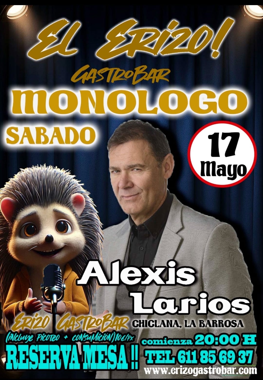 Prepárate para un monólogo inolvidable con uno de los grandes del humor español. Alexis Larios, cómico onubense con más de 2.500 actuaciones, llega al Erizo Gastrobar con su estilo directo, cercano y ¡desternillante!