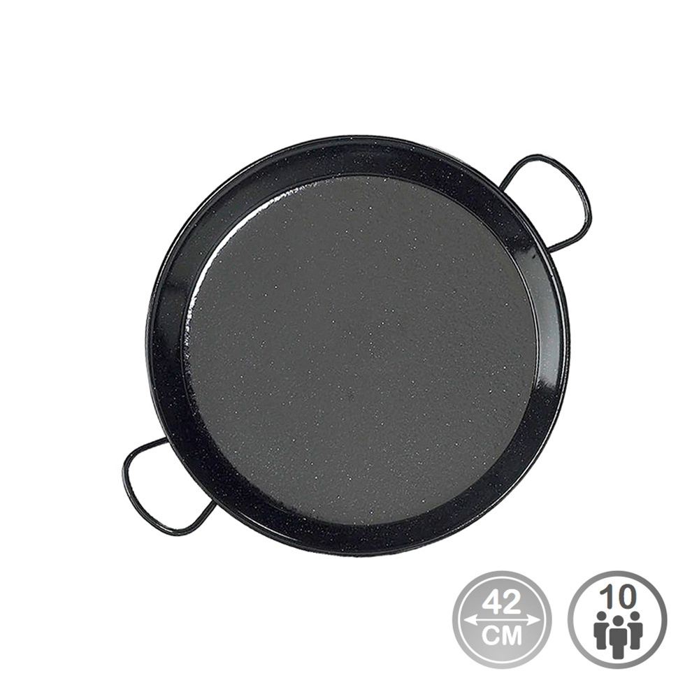 PAELLERA TRADICIONAL DE ACERO ESMALTADO Ø42cm (10 PERSONAS) APTA PARA COCINAS DE GAS. FABRICACION NACIONAL. ATENCIÓN: REQUIERE MANTENIMIENTO. DEBE SER ALMACENADO CON UNA CUBIERTA DE ACEITE. VAELLO