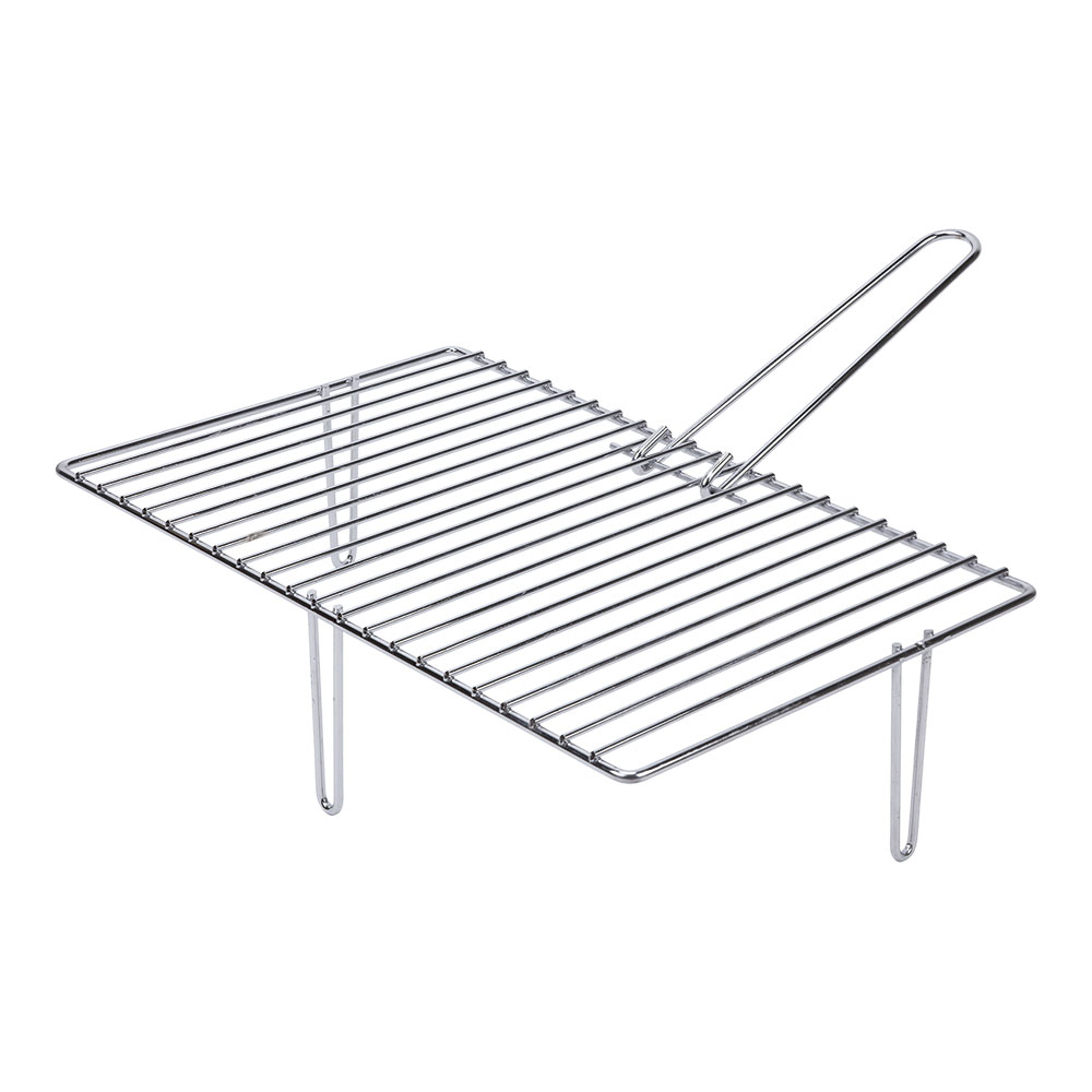 PARRILLA CINCADA DE 3 PATAS PARA CHIMENEAS. MEDIDA: 46,6x28cm (ancho/fondo). CON MANGO EXTRAÍBLE. PATAS DE 120mm.