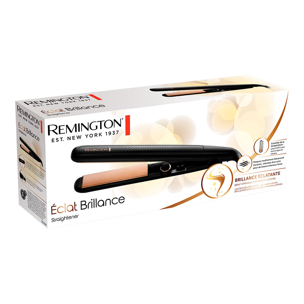 PLANCHA DE CABELLO ECLAT BRILLANCE. MODELO: S6308. CERÁMICA. TURMALINA IÓNICA. AHORA CON TITANIO. 8 AJUSTES DE TEMPERATURA (150 – 230 °C). SELECTOR GIRATORIO DE TEMPERATURA. INDICADOR LED DE ENCENDIDO/APAGADO. CALENTAMIENTO RÁPIDO EN 15 SEGUNDOS. PLACAS FLOTANTES QUE REDUCEN LA PRESIÓN. PLACAS MÁS LARGAS DE 110 mm. BLOQUEO DE PLACA PARA QUE SEA MÁS FÁCIL DE GUARDAR. CABLE GIRATORIO. APAGADO AUTOMÁTICO DE SEGURIDAD DESPUÉS DE 60 MINUTOS. FUNDA DE VIAJE RESISTENTE AL CALOR. DIMENSIONES: 29,5 x 3 x 3,5 cm COLOR NEGRO, PLACAS DORADAS