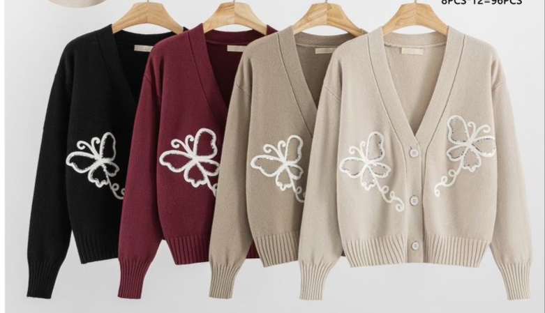 Preciosa rebeca en 4 colores con una mariposa bordada, llega hasta la cintura, tiene 3 botones, talla unica
