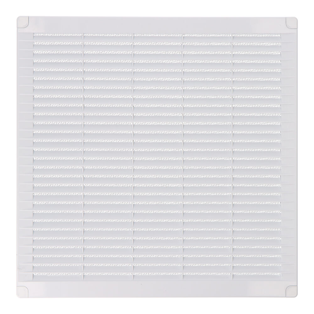 REJILLA VENTILACIÓN CUADRADA DE PLÁSTICO CON TAPONES Y MOSQUITERA, MEDIDA 300x300x7mm BLANCA