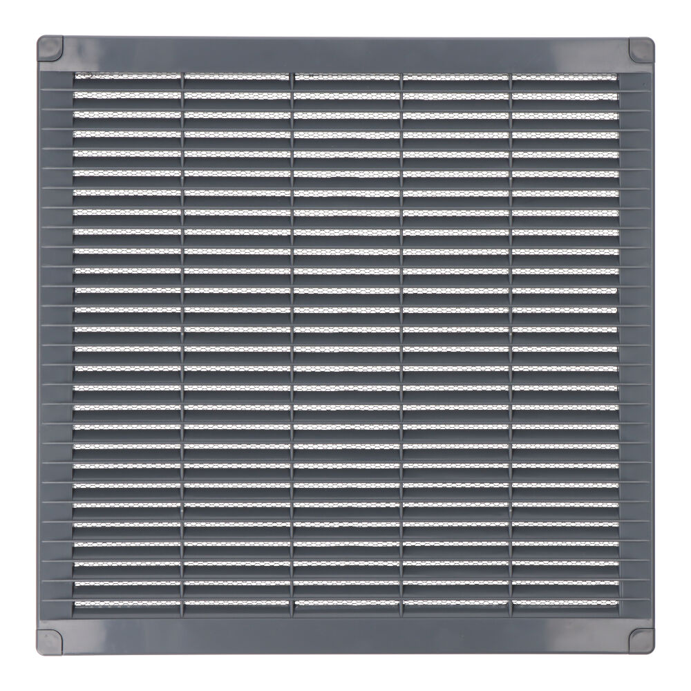REJILLA VENTILACIÓN CUADRADA DE PLÁSTICO CON TAPONES Y MOSQUITERA 300x300x7mm GRIS