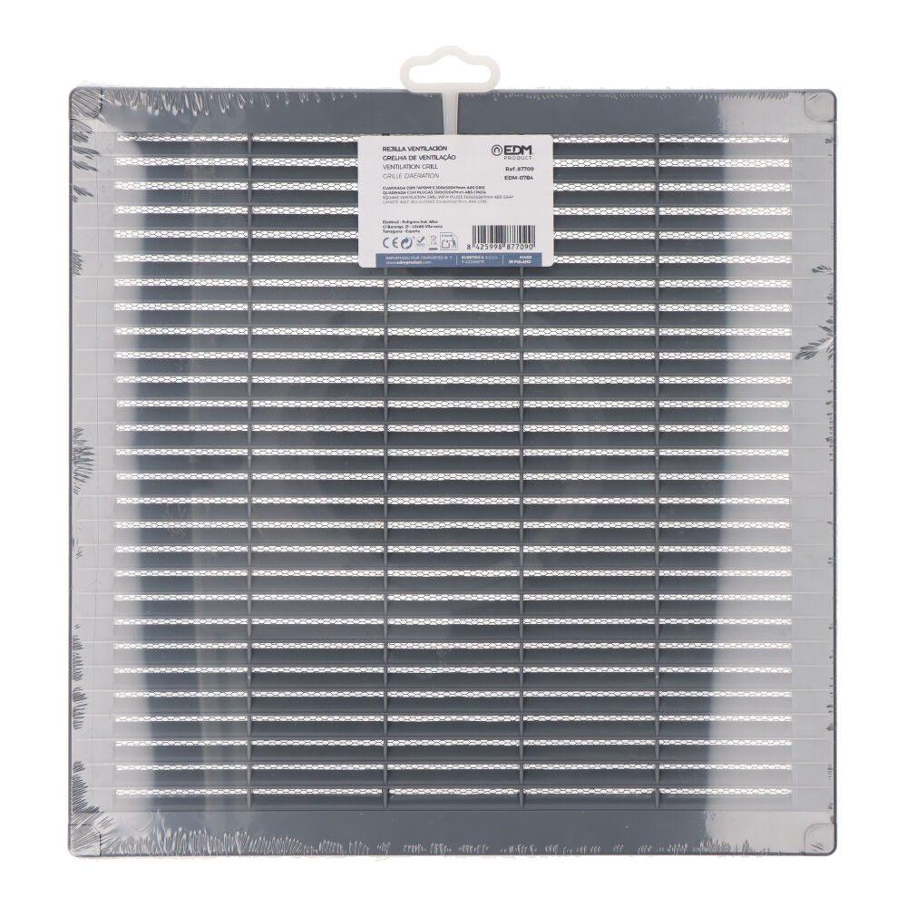 REJILLA VENTILACIÓN CUADRADA CON TAPONES Y MOSQUITERA 300x300x7mm ABS GRIS