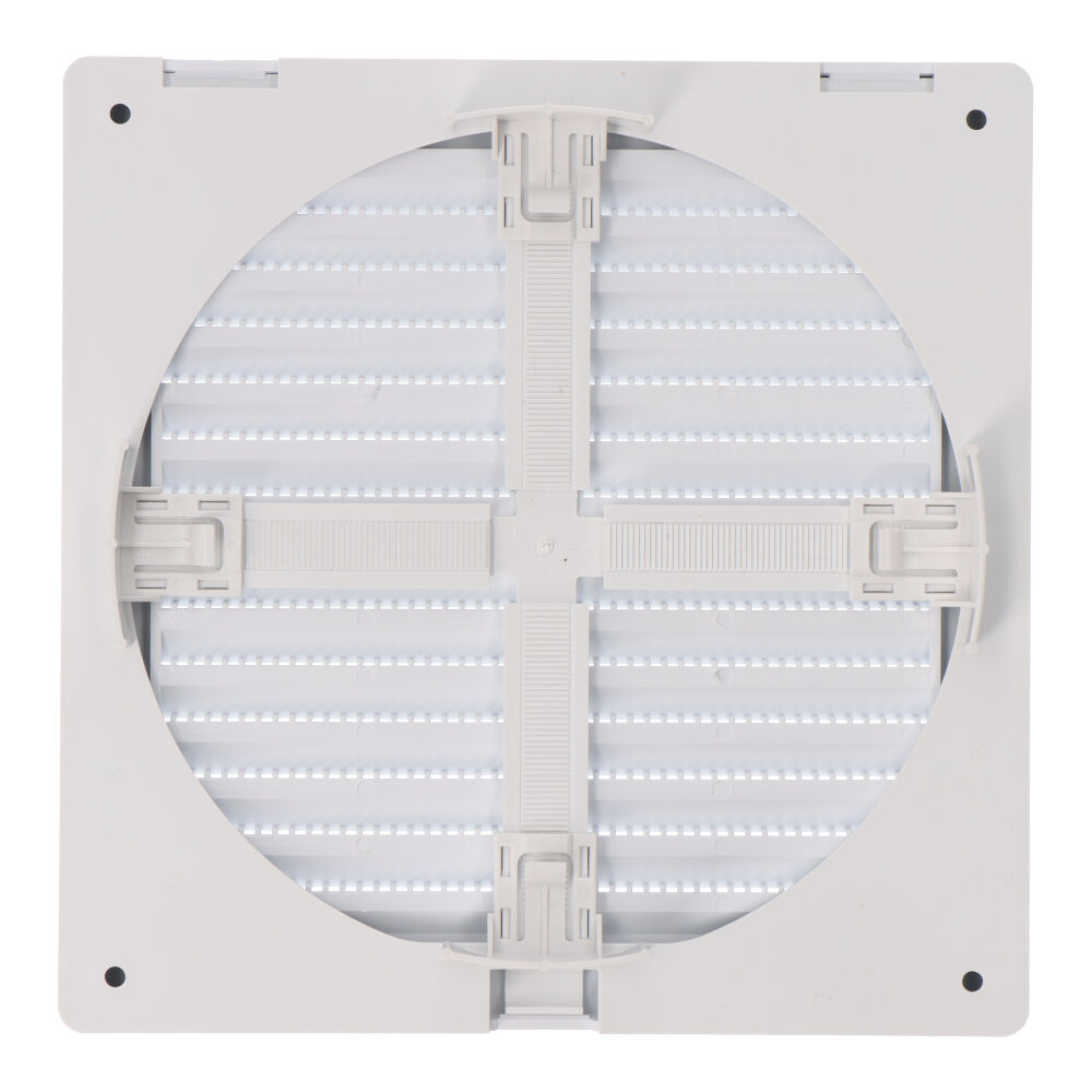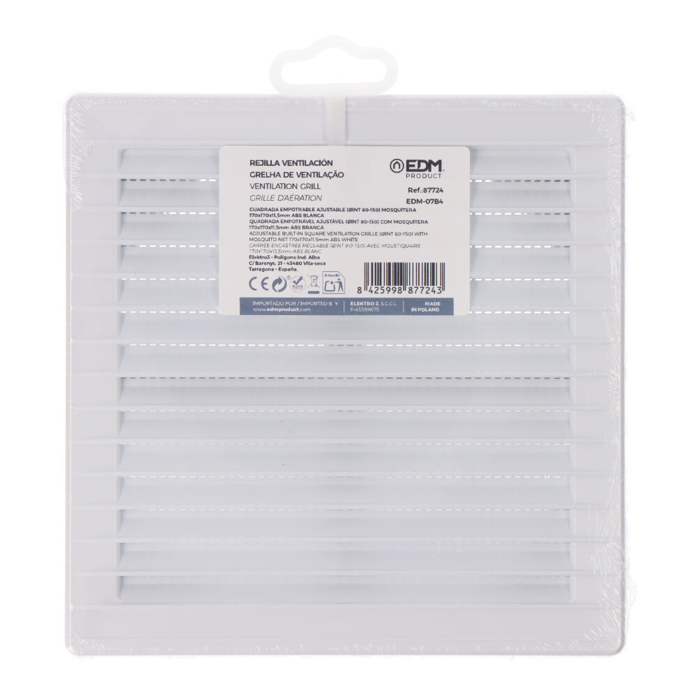 REJILLA VENTILACIÓN CUADRADA EMPOTRABLE AJUSTABLE CON MOSQUITERA, MEDIDA ENCLAVAMIENTO Ø 80-150, MEDIDA 170x170x11,5mm DE PLÁSTICO BLANCA