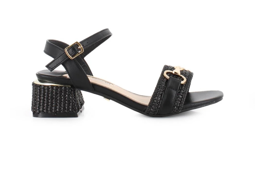 Tacón cuadrado de 5 cm de altura, cierre con hebilla.