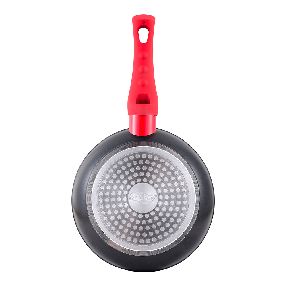 MEDIDAS: Ø 18 cm CUERPO FABRICADO EN ALUMINIO FORJADO. REVESTIMIENTO ANTIADHERENTE MARMOLADO. BASE DE INDUCCIÓN. MANGO RESISTENTE AL CALOR Y CON EFECTO “TACTO SUAVE”.
