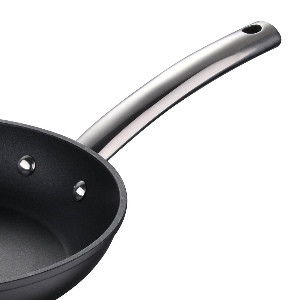 SARTEN Ø24×5,0cm DE ALUMINIO FORJADO FOODIES BGMP-3551 MASTERPRO. ESTA SARTÉN ESTÁ ESPECIALMENTE DISEÑADA PARA FACILITAR LA PREPARACIÓN DE SALSAS, CARNES, VEGETALES, CARNES, ENTRE OTROS ALIMENTOS. SU COMPOSICIÓN ES A BASE DE ALUMINIO FORJADO, UN MATERIAL COMÚNMENTE CONOCIDO POR SU CAPACIDAD DE TERMORRESISTENCIA. ESTE ELEMENTO SÓLIDO DISPERSA EL CALOR DE MANERA UNIFORME A LO LARGO DE SU SUPERFICIE PARA PROPORCIONAR UN CONTROL DE COCCIÓN AJUSTABLE AL PREPARAR CUALQUIER RECETA. ADEMÁS, MANTIENE SU FORMA ORIGINAL AÚN DESPUÉS DE LA EXPOSICIÓN PROLONGADA A ALTAS TEMPERATURAS. LA SARTÉN POSEE UNA CAPA DE HIERRO FUNDIDO QUE AYUDA A RETENER LA TEMPERATURA DURANTE MÁS TIEMPO. SU BASE ESTÁ HECHA EN ALUMINIO DE GROSOR CONSIDERABLE PARA BRINDAR MAYOR RESISTENCIA FRENTE AL CALOR.