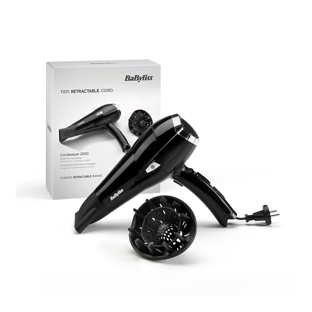 SECADOR DE PELO 2000W NEGRO CON CABLE RETRÁCTIL
