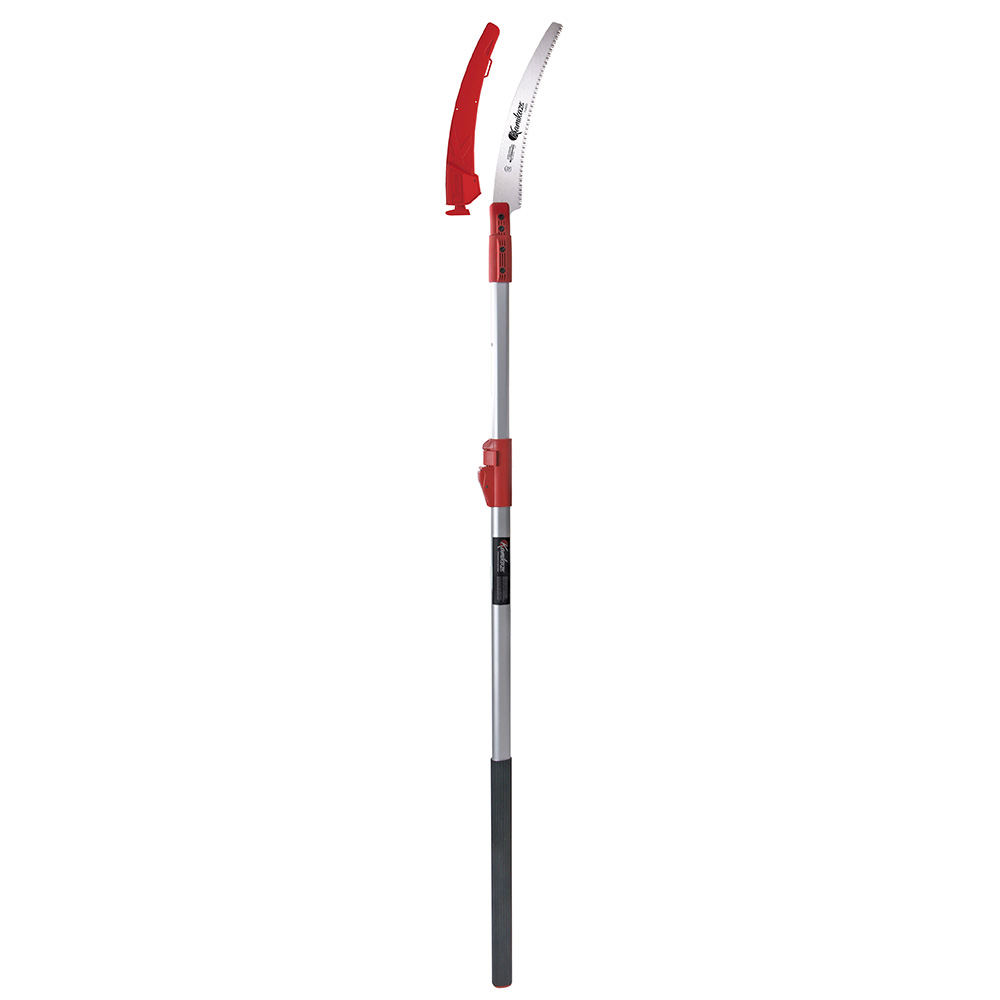 SERRUCHO TELESCOPICO Y PERTIGA DE 3M, SERRUCHO TELESCOPICO DE ALUMINIO OVALADO. DOS TRAMOS: MIN. 1,5 M / MAX. 3 M. SERRUCHO HOJA CURVA DE 330 MM. DIENTE JAPONÉS ENDURECIDO. DISEÑO DE DIENTE ESTÁNDAR. DIAMETRO CORTE MAX. Ø80MM. FUNDA DE PLASTICO INCLUIDA: FACILITA EL TRANSPORTE Y ALMACENAMIENTO DE LA SIERRA. KAMIKAZE