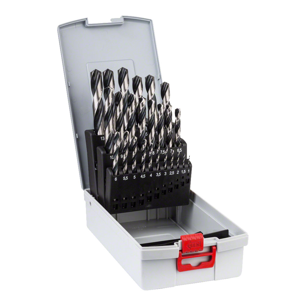 SET DE 25 BROCAS HELICOIDALES HSS POINTTEQ PROBOX MEDIDA DE 1-13mm 2608577352 BOSCH PERFORACIÓN RÁPIDA EN METAL. LA BROCA PARA METAL HSS POINTTEQ PERFORA RÁPIDAMENTE EL METAL