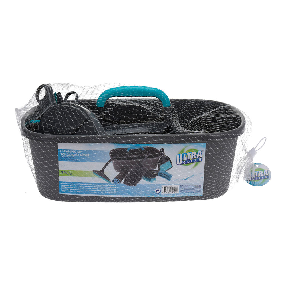 SET DE LIMPIEZA DE 7 PIEZAS COLOR GRIS Y TURQUESA