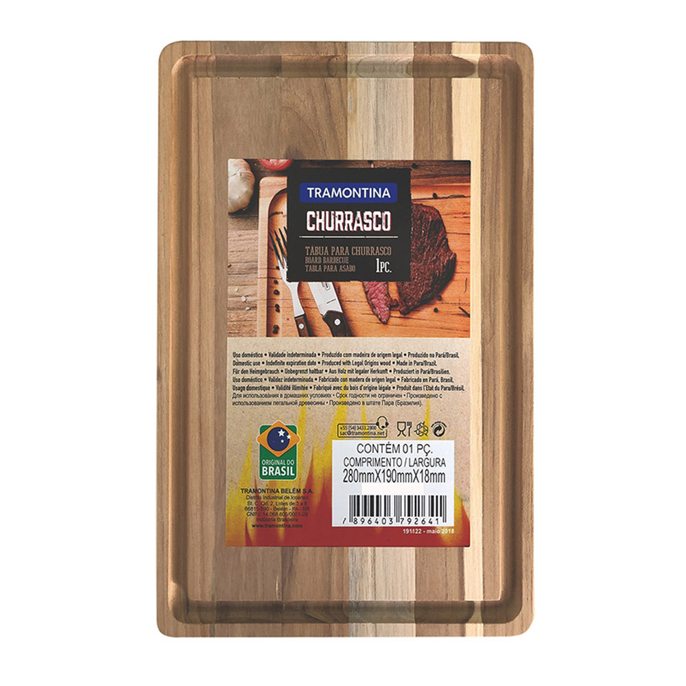 TABLA DE CORTE RECTANGULAR EN MADERA ACABADO NATURAL 33x22x1,8cm (ancho/fondo/alto) TRAMONTINA. TABLA PARA ASADO TRAMONTINA RECTANGULAR EN MADERA JATOBA CON ACABADO NATURAL 33x22x1,8cm. ANTES DEL PRIMER USO, LAVE EL PRODUCTO Y ENJUÁGELO BIEN. DESPUÉS DE CADA USO, LAVE NORMALMENTE EL PRODUCTO. SEQUE CON TOALLA DE PAÑO. NO LAVE EL PRODUCTO EN LAVAVAJILLAS NI USE ESPONJA DE ALUMINIO O ALAMBRE. NO DEJE EL PRODUCTO SUMERGIDO EN EL AGUA. NO DEJE EL PRODUCTO SECARSE AL SOL, NI SECARSE EN PIE EN LA PILETA. NO APILE PIEZAS QUE TODAVÍA ESTÉN HÚMEDAS. NO LLEVE EL PRODUCTO AL HORNO NI AL FRIGORÍFICO.