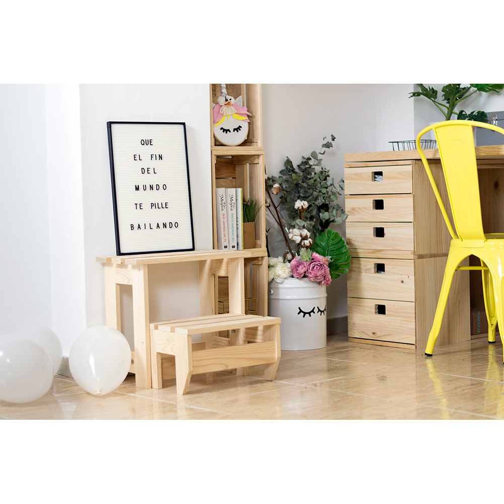 TABURETE/ESCALERA MONTADA PINO BRUTO 100% PEFC CERT ASTIGARRAGA TAMAÑO PRODUCTO EMBALADO 43×46,5x27cm TEST TECNALIA UNE-EN 14183:2004
