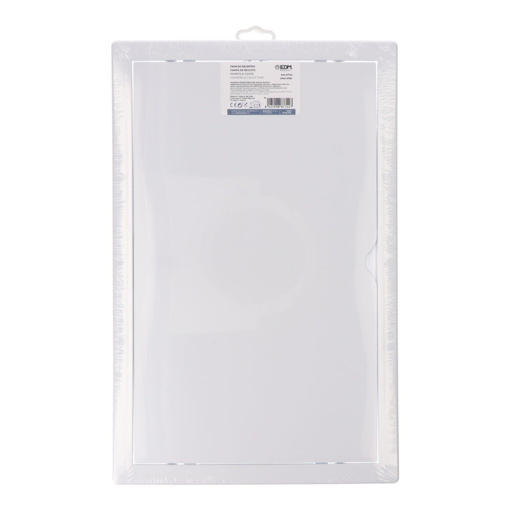 TAPA DE REGISTRO RECTANGULAR EMPOTRABLE DE PLÁSTICO, MEDIDA ENCLAVAMIENTO 25x40cm, MEDIDA 27,5×42,5cm, APTO PARA PLADUR Y CON MECANISMO DE APERTURA (PUSH-PULL), BLANCA