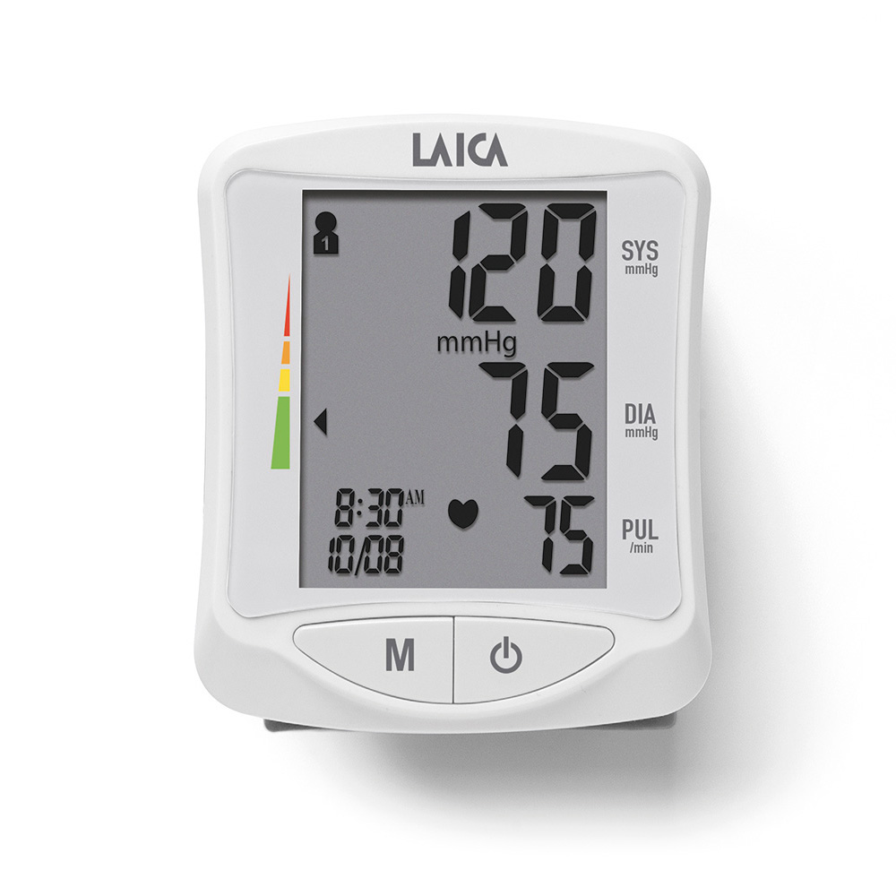 TENSIOMETRO DIGITAL DE MUÑECA LAICA BM1006 BLANCO ESTE DISPOSITIVO LE PERMITE MEDIR RAPIDAMENT SU PRESION ARTERIAL EN EL HOGAR. MEDICION RAPIDA DE LA PRESION ARTERIAL SISTOLICA Y DIASTOLICA Y LA FRECUENCIA CARDIACA E INDICA CUALQUIER ARRITMIA 60 REGISTROS PARA 2 PERSONAS FUNDA INCLUIDA GRAN PANTALLA LCD 7,7×6,2×6,5cm 180g FUNCIONA CON 2xAAA INCLUIDAS