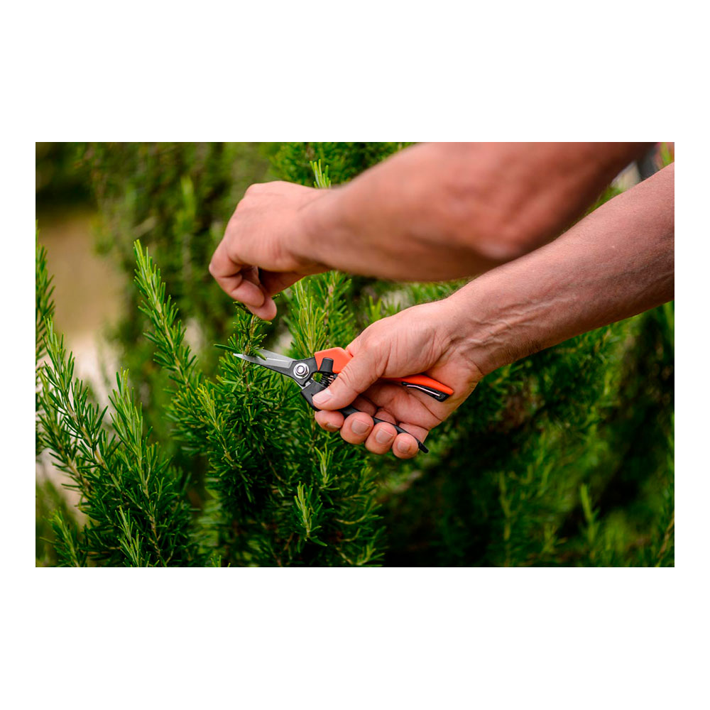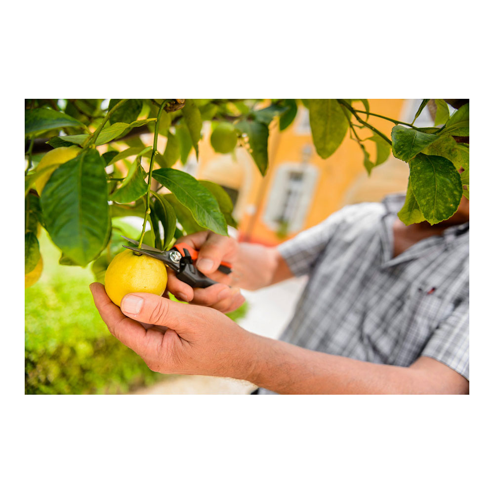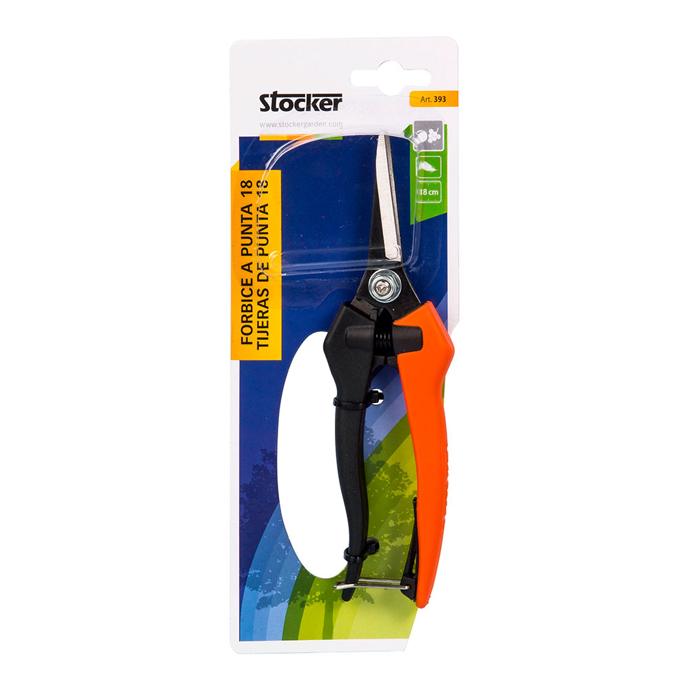 TIJERA PARA VENDIMIA DE PUNTA 18. STOCKER. COMPACTA Y LIGERA, PERFECTA PARA LA VENDIMIA Y LA RECOLECCIÓN DE FRUTOS CÍTRICOS. HOJA DE ACERO FORJADO EN CALIENTE. MANGO DE PVC. EMPUÑADURA ERGONÓMICA. LONGITUD: 18cm PESO: 90g
