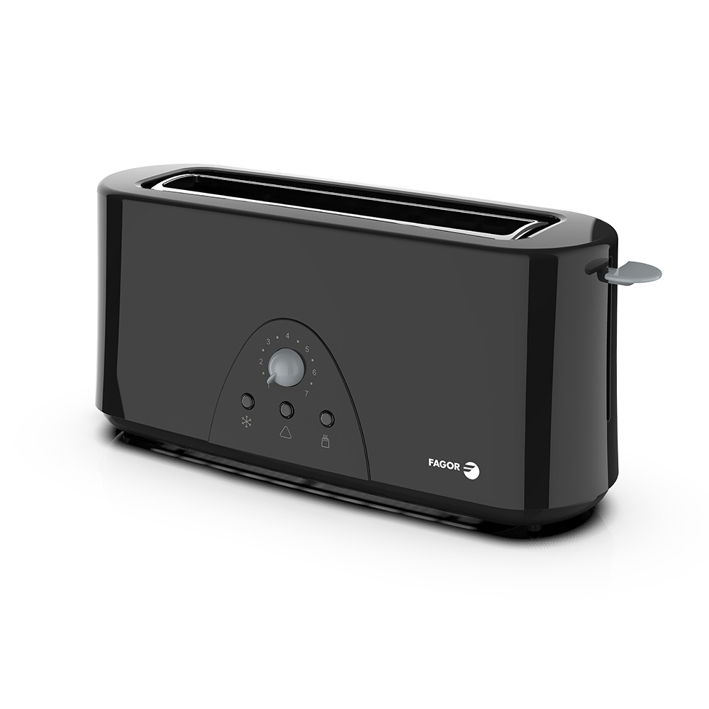 TOSTADOR LARGO LONGTOAST 980W FGE346A FAGOR RANURA LARGA PARA TODO TIPO DE PANES. CONTROL ELECTRÓNICO DE TOSTADO. 3 FUNCIONES: RECALENTAR, DESCONGELAR Y CANCELAR. FUNCIÓN DE ELEVACIÓN ALTA – BANDEJA RECOGEMIGAS. 7 NIVELES DE TOSTADO. BASE ANTIDESLIZANTE 41×11,5x18cm (ancho/fondo/alto)