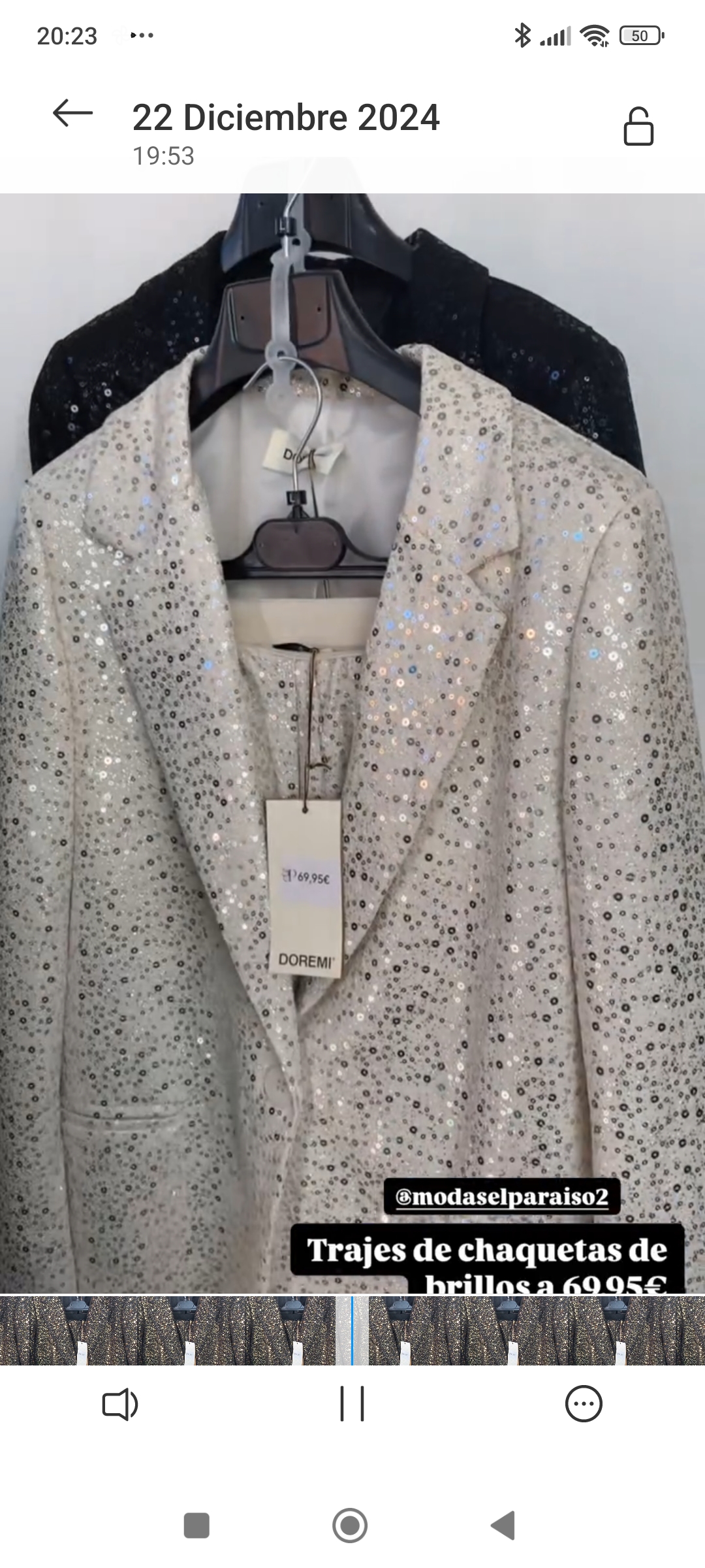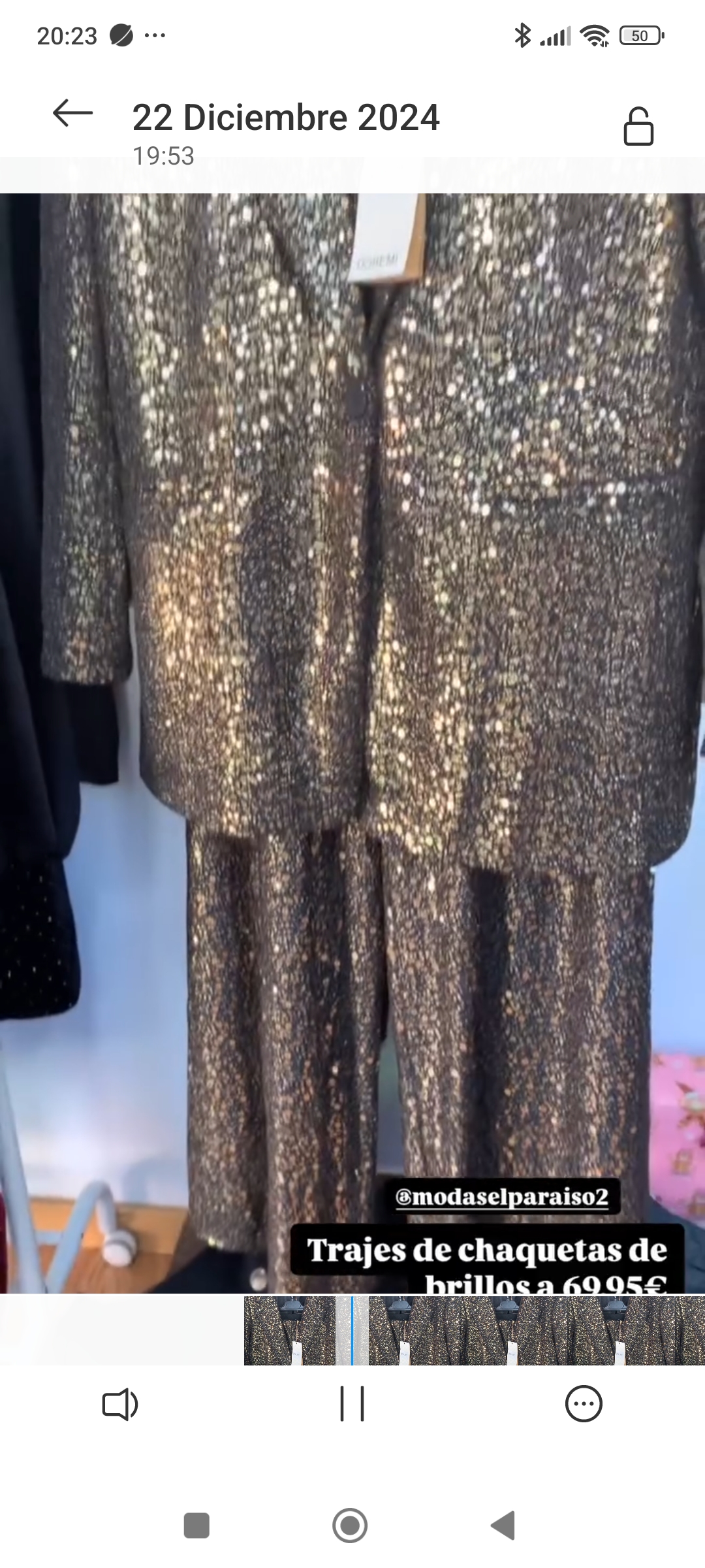 Traje chaqueta de lentejuelas la lentejuelas que no se enganchas porque van incrustadas en el tejido.