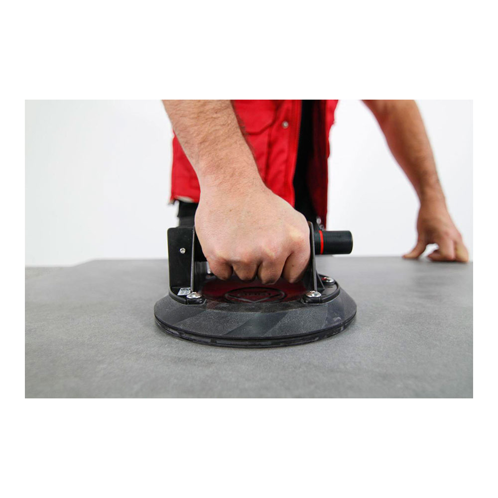 VENTOSA CON BOMBA DE VACIO Ø200mm 18919 RUBI. IDEAL PARA LA CARGA Y MANIPULACIÓN DE MATERIALES PESADOS SIN IMPORTAR EL TIPO DE ACABADO SUPERFICIAL. SE ADAPTA TANTO A SUPERFICIES LISAS COMO RUGOSAS, ASÍ COMO LAS QUE PRESENTAN TEXTURAS VARIADAS (ESTRUCTURADAS). EL DIÁMETRO DE 20cm DE LA VENTOSA CON BOMBA DE VACÍO, ES PERFECTO PARA LA MANIPULACIÓN DE BALDOSAS DE GRAN FORMATO O LÁMINA CERÁMICA. SE ACTIVA FACILMENTE CON UN SÓLO DEDO Y ESTÁ EQUIPADA CON UNA MARCA DE SEGURIDAD QUE NOS INDICA LA PÉRDIDA DE SUCCIÓN Y NOS RECUERDA LA NECESIDAD DE BOMBEAR NUEVAMENTE PARA RETENER LA CARGA DE VACÍO EN LA VENTOSA. DISPONE DE UNA VÁLVULA DE LIBERACIÓN DE PRESIÓN MANUAL, PARA PODER RETIRAR, FACILMENTE, LA VENTOSA DEL MATERIAL MANIPULADO. SE SIRVE EN UN PRÁCTICO ESTUCHE-MALETA, PARA PROTEGERLA Y TRANSPORTARLA CON LA MÁXIMA SEGURIDAD.
