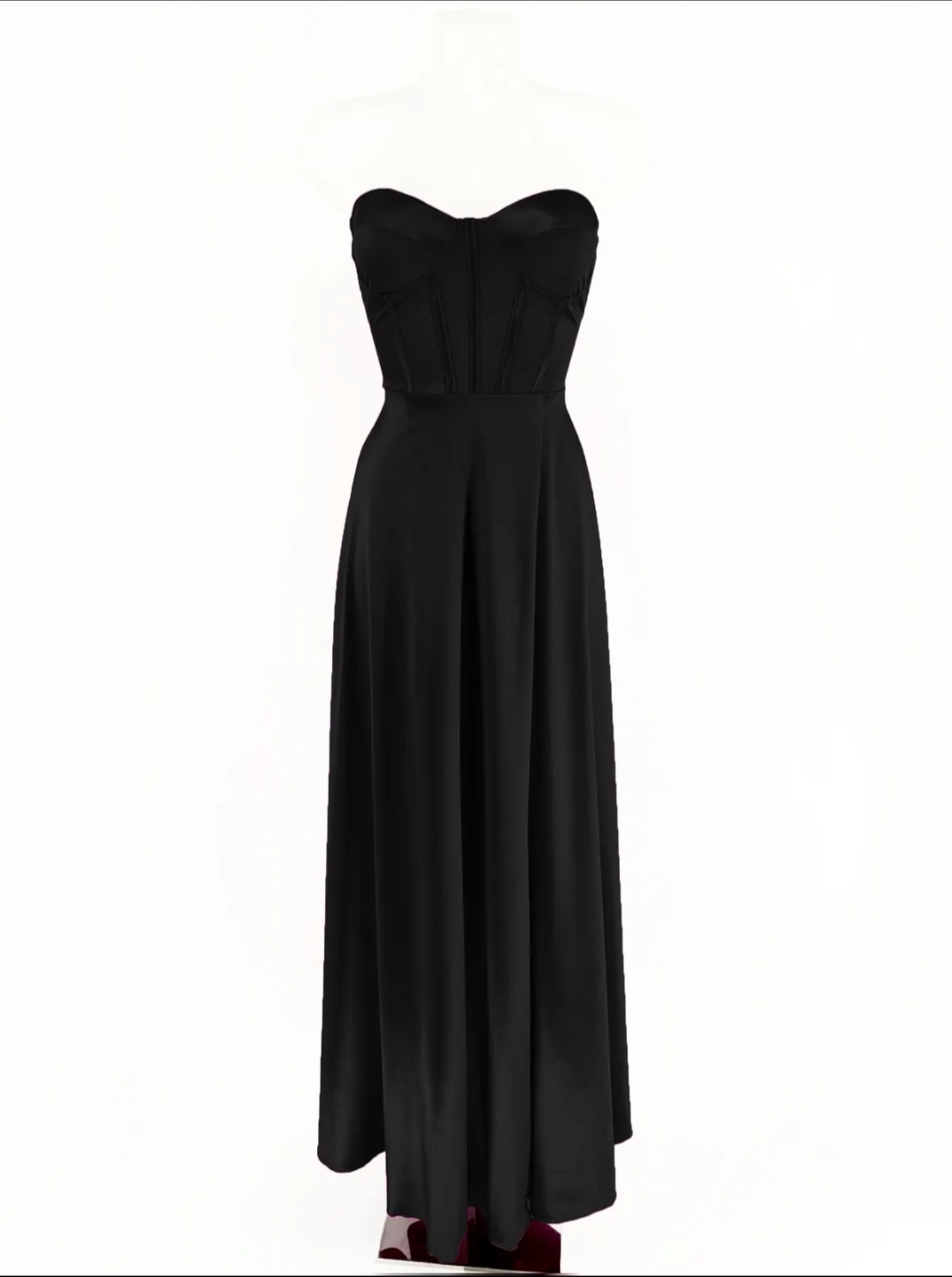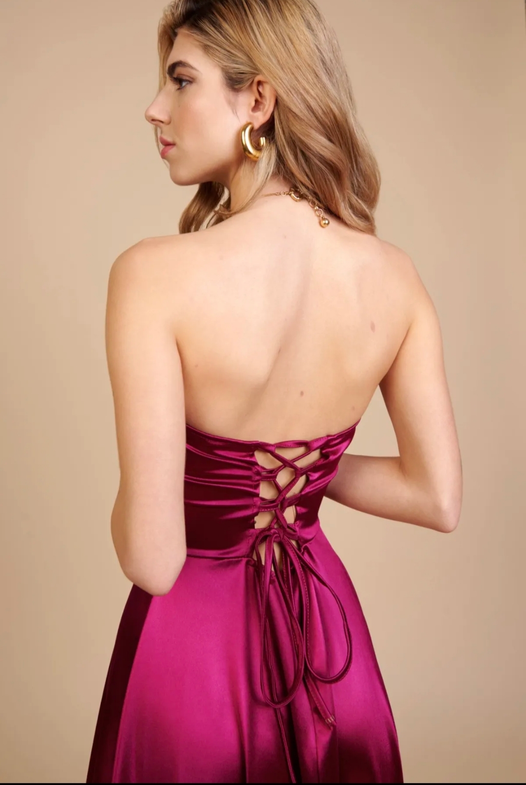 Vestido largo con abertura en el lateral y espalda cruzada.