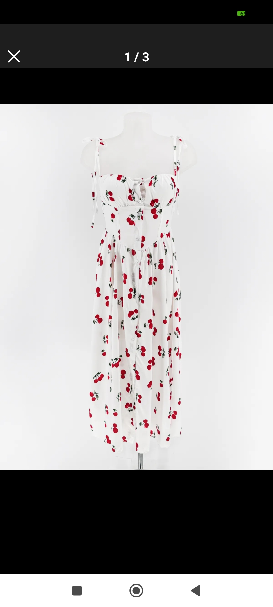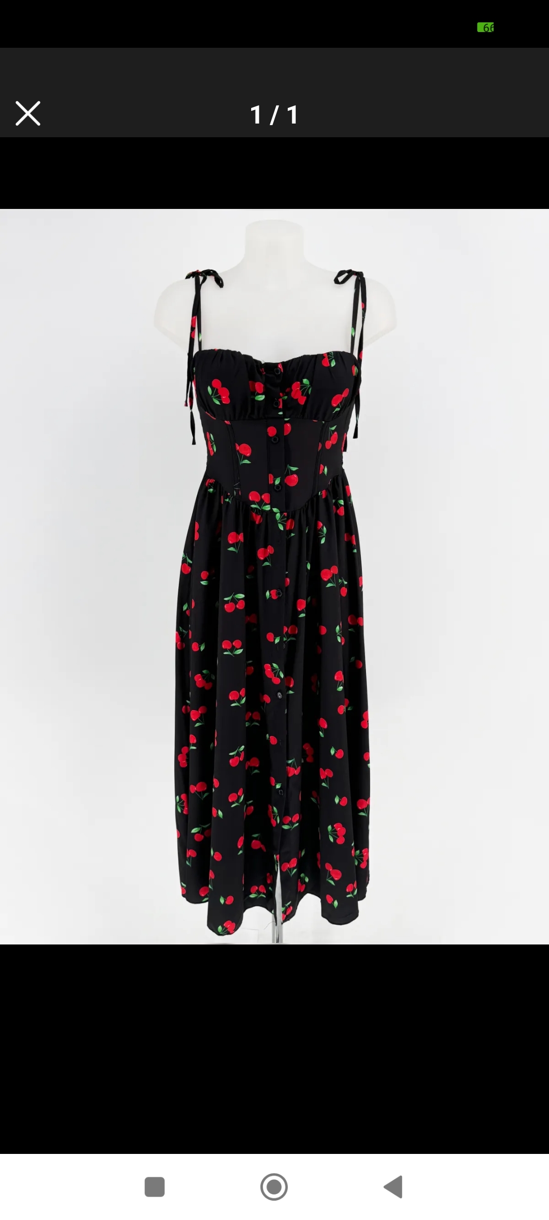 Vestido en tela fina y fresca con cerezas 🍒 con botones en el centro y pecho con cascos, tirantes ajustable para hacerle moña y adaptarlo a tu comodidad.