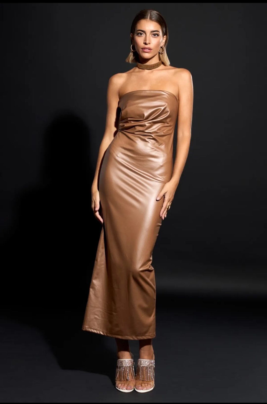 Vestido de palabra de honor en poli piel