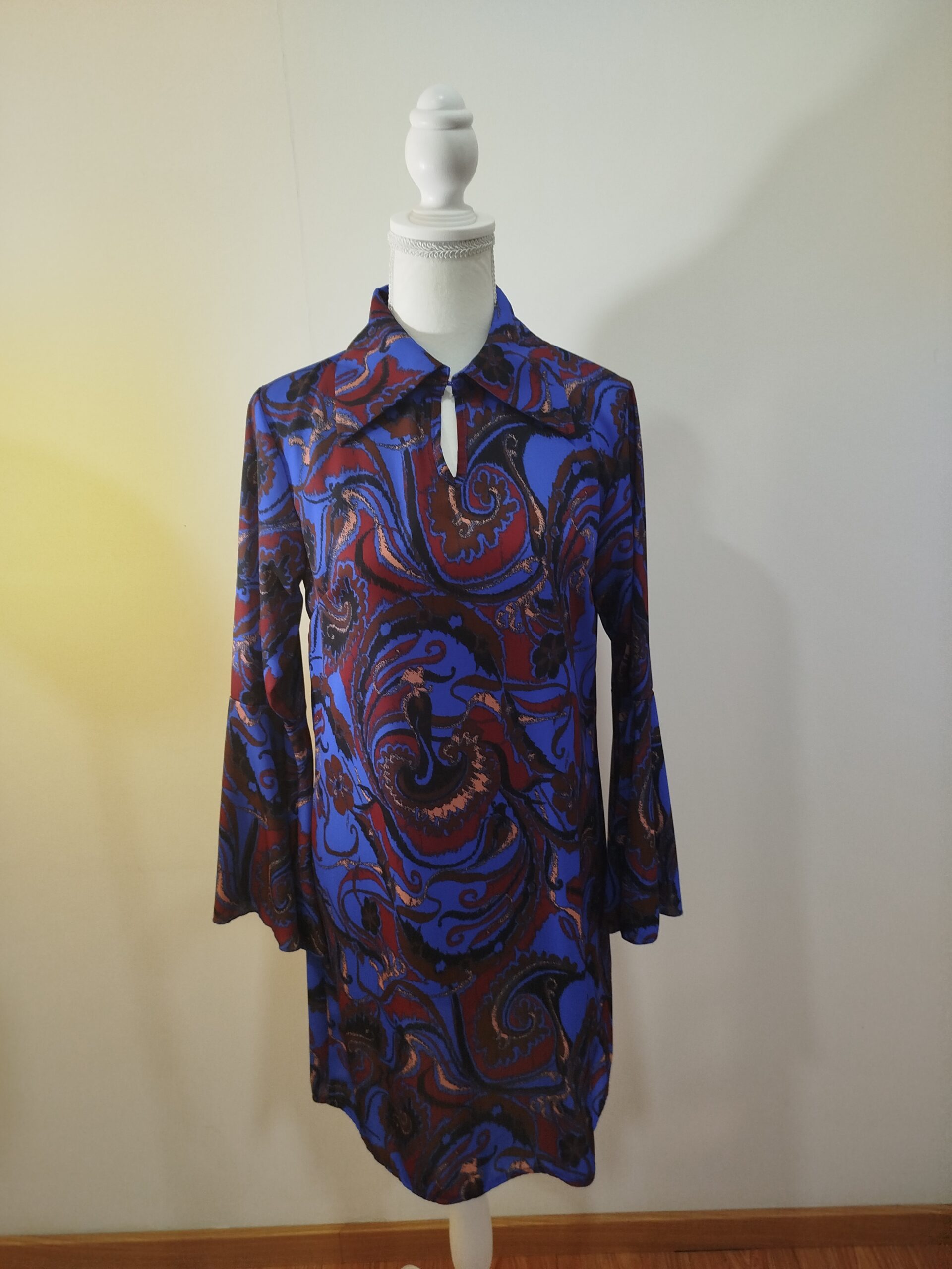 Vestido con estampado original, campana en las mangas de una prestigiosa firma Italiana.