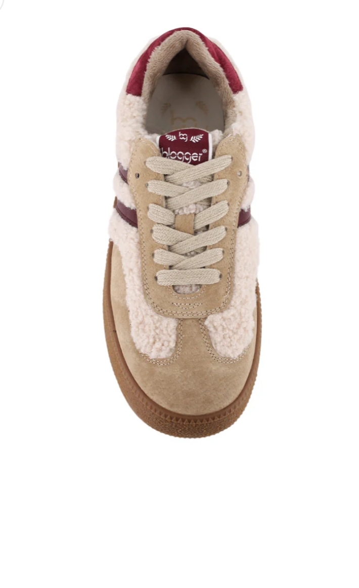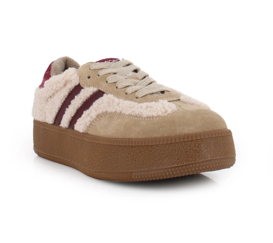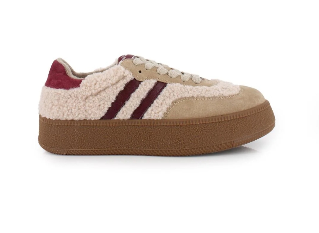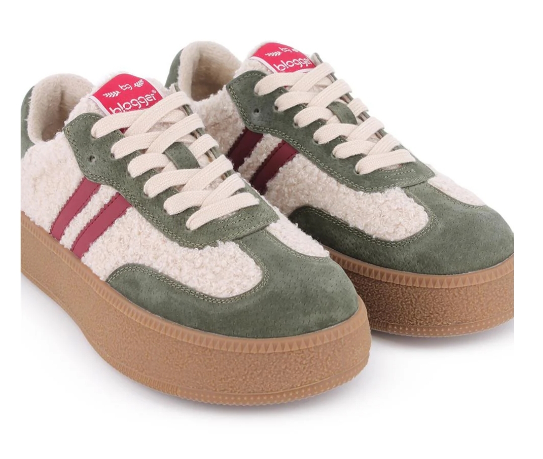 Zapatillas en material sintético color beige con detalles en verde y burdeos